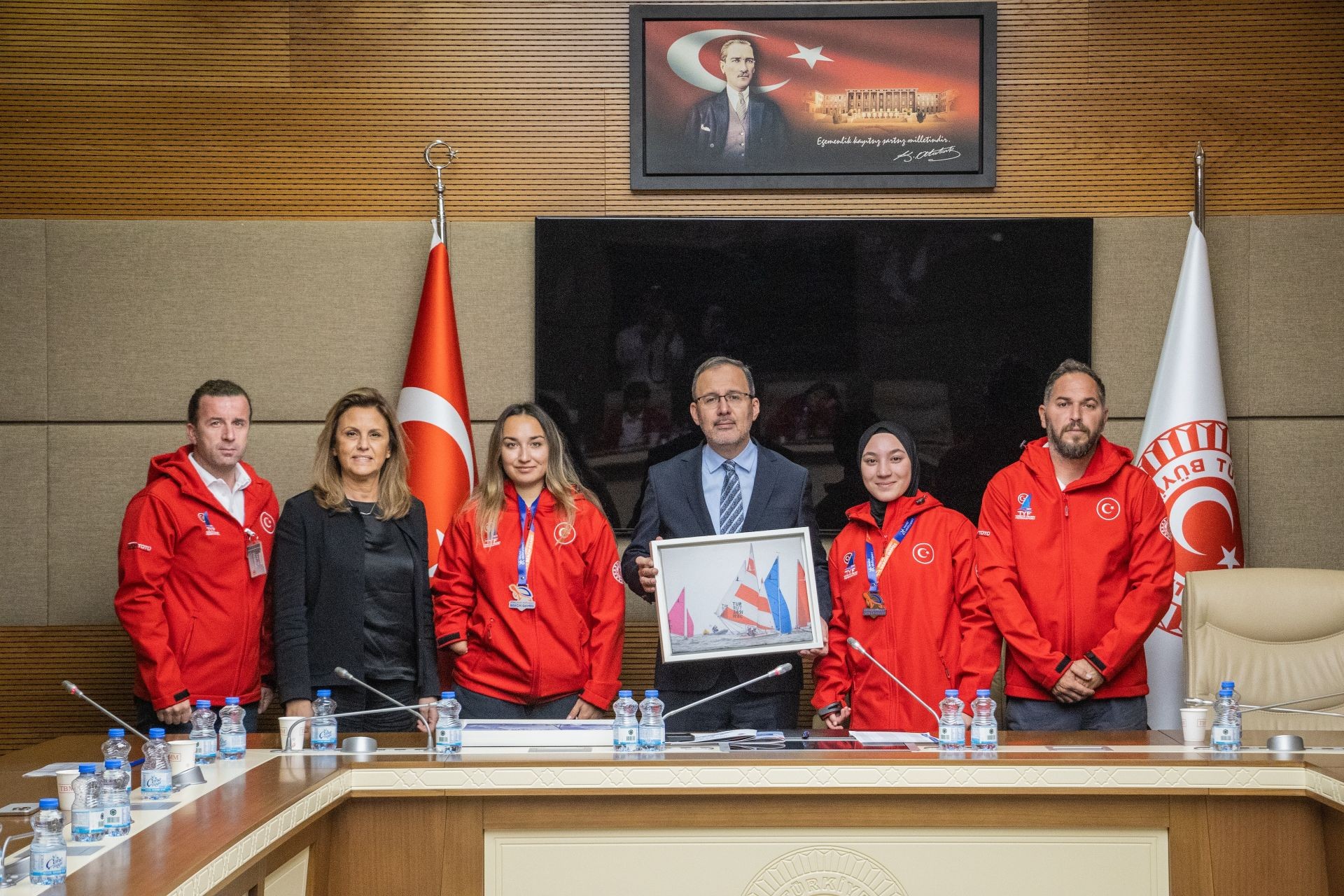 2025 yılında katıldıkları Dünya ve Avrupa Şampiyonalarında madalya kazanarak ülkemizi gururlandıran Milli Sporcularımız, onlara eşlik eden Türkiye Yelken Federasyonu Başkanı Özlem Akdurak, Başkan Vekili Hakan Yenigün, As Başkanlar Melih Dilikoğlu ve Murat Şener, EUROSAF Avrupa Yelken Federasyonu Başkanı Pınar Coşkuner Genç ve Milli Takım Antrenörleri ile Ankara’da bir dizi ziyaret gerçekleştirdiler.